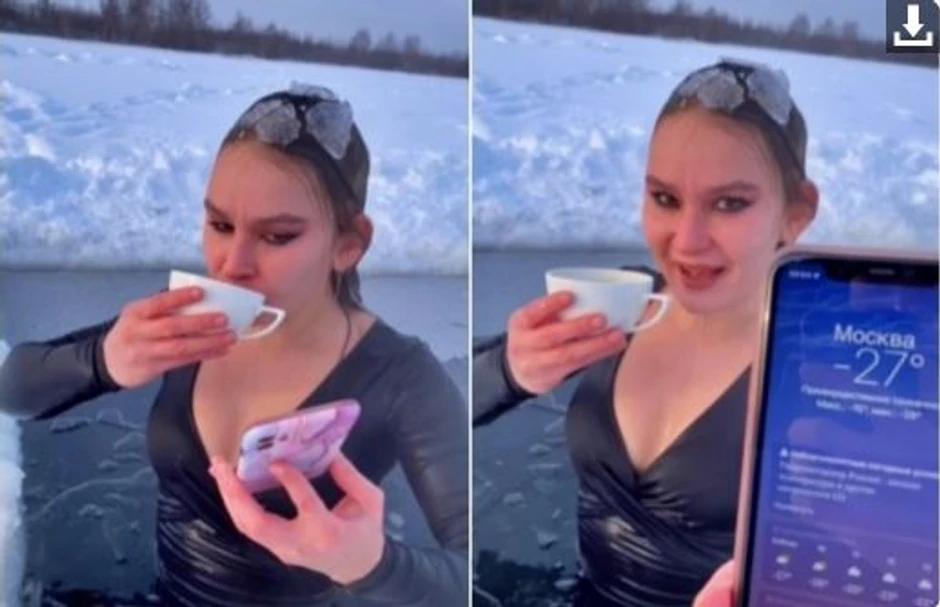 Naime, ova Ruskinja, čije je pravo ime Ana Galkina je zaronila u vodu jezera, dok je napolju bilo "samo" -27 celzijusa ispod nule.