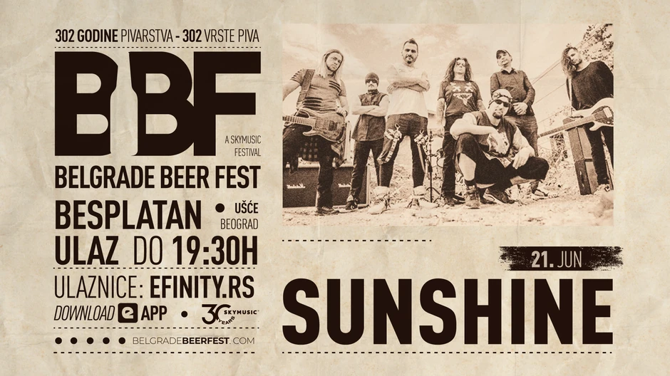 Zvanično je! Ikonični beogradski sastav Sunshine je spreman da ponovo zakuca na main stage-u Belgrade Beer Festa (BBF), kao headliner ovogodišnjeg festivala, 21 juna.