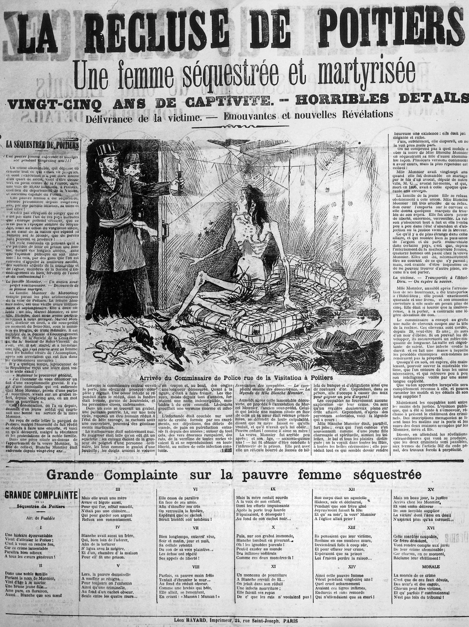 Dvadeset trećeg maja 1901. godine kancelarija javnog tužioca u Parizu primila je misteriozno, nepotpisano, pismo: "Gospodine javni tužioče: čast mi je da Vas obavestim o izuzetno ozbiljnom slučaju. Reč je usedelici koja je zaključana u kući gospođe Monije. Izgladenela je i živela je na trulom otpadu u proteklih 25 godina, ukratko, u vlastitom izmetu."