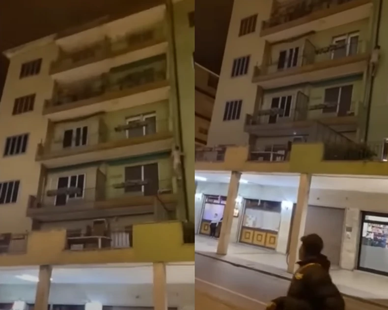 Društvenim mrežama uveliko kruži video na kojem goli muškarac beži s balkona zgrade pokušavajući da se dočepa nekog drugog balkona, očigledno onog koji ne pripada njegovoj ljubavnici.