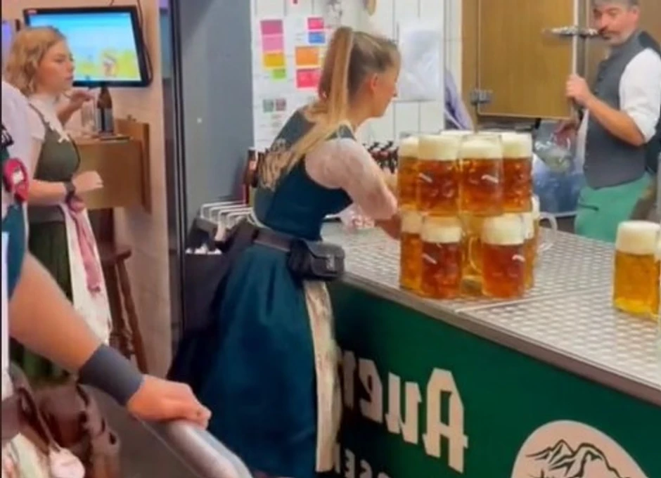 Kako se vidi na jednom snimku koji je objavljen na Tik Toku, konobarica sa "Oktoberfesta" je u jednom potezu uspela da ponese veliku količinu piva, odnosno, krigli, prema nekim procenama, i više od 30 litara odjednom.