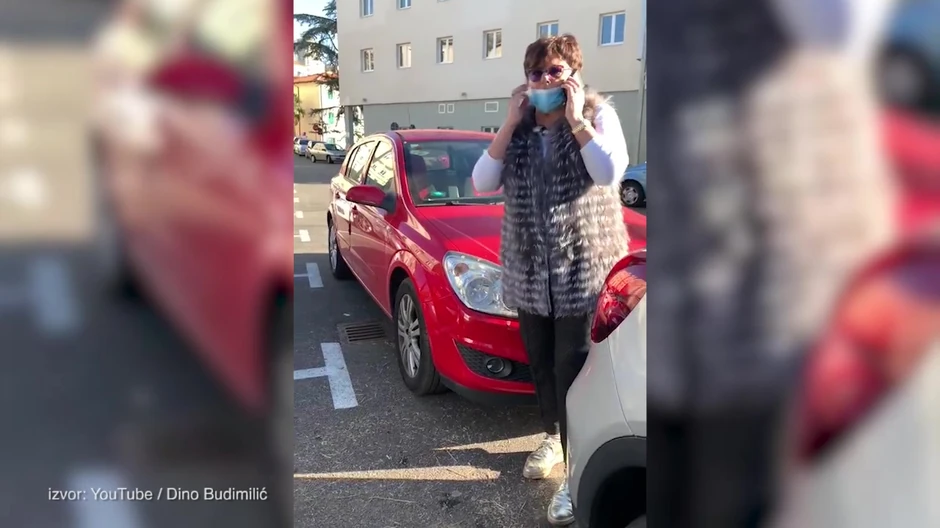 Na snimku se vidi žena koja dolazi na parking koji se nalazi kod KBC Rijeka i viče na čoveka kojeg je zagradila svojim "mercedesom". On ju je, naime, nazvao na broj mobilnog koji je ostavila u vozilu, ali njoj, izgleda, nije bilo jasno zašto je zove.