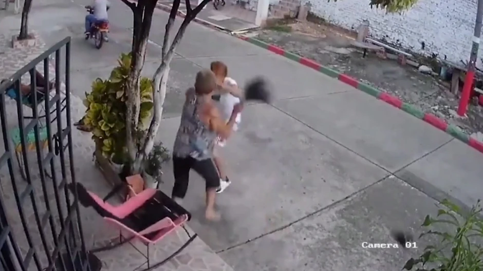 Kamera je nekoliko trenutaka ranije snimila dvojicu mladića kako dolaze motorom nedaleko od kuće, a jedan od njih odlučio je da napadne ženu.