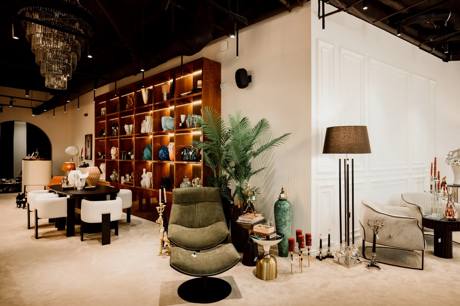 Salon odiše elegancijom, sofisticiranošću i luksuzom, a nudi unikatne, dizajnerske komade nameštaja i dekorativne elemente