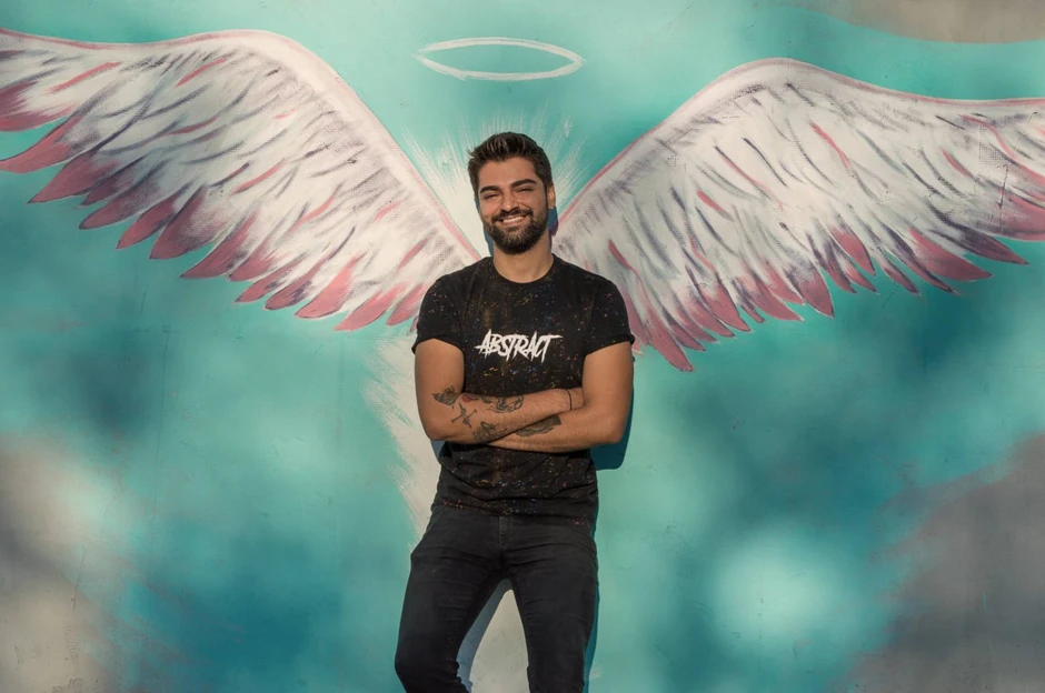 A desetak metara dalje, takođe na zidu, njegov instagram kutak za fotografisanje sa anđeoskim krilima.