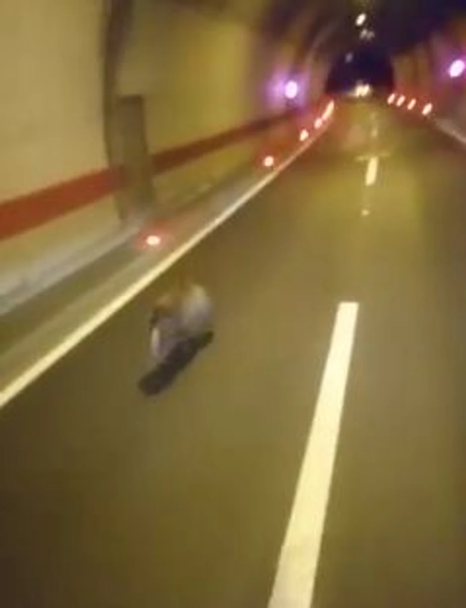 Tokom vožnje automobilom kroz tunel, momci koji su upravljali vozilom uočili su malog medveda kako trčećim korako, sav usplahiren i uplašen traži izlaz iz tunela, u koji je po svemu sudeći zalutao.