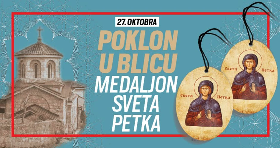 Srpska pravoslavna crkva u četvrtak, 27. oktobra, obeležava Prepodobnu mati Paraskevu - Svetu Petku, svetiteljku koja je pomagala bolesnima i siromašnima. Tim povodom, “Blic” u četvrtak svim čitaocima poklanja medaljon sa njenim likom.