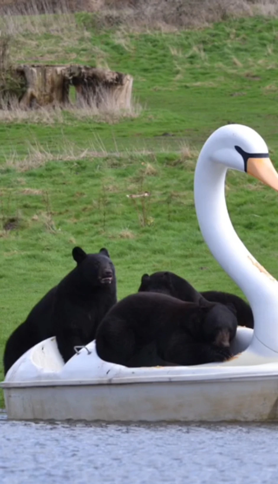 Naime, kako je izvestio Safari park, jedan od čuvara, Tomi Babington je dopremio pedalinu u obliku labuda, kako bi se životinje zabavljale u velikom bazenu vode koji se formirao usled vlažnog vremena.