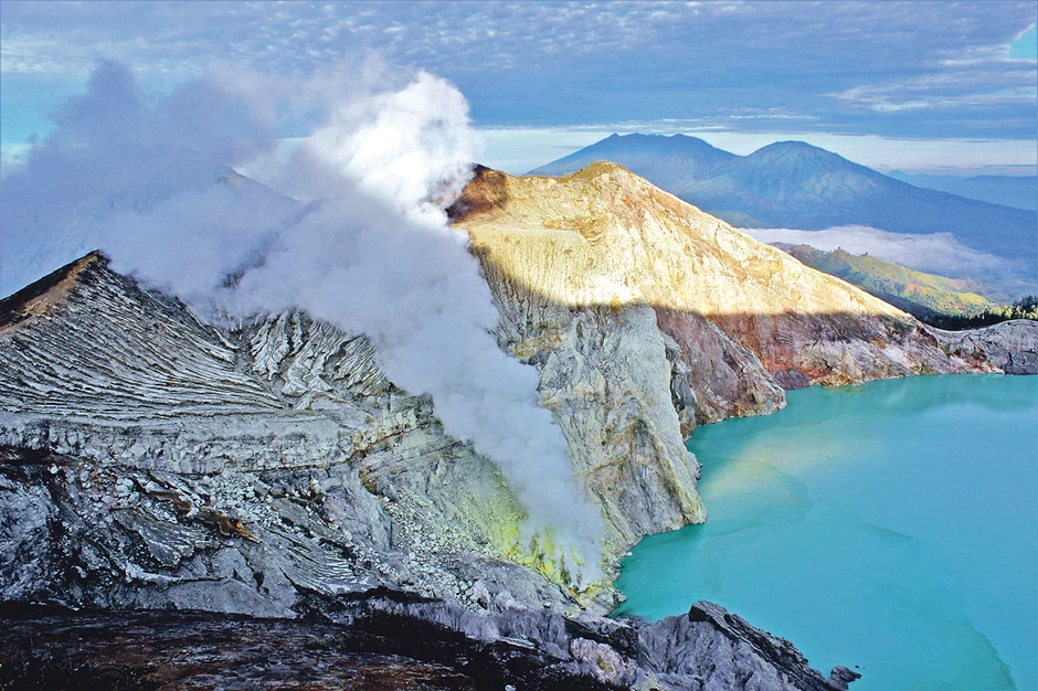 Ovaj vulkan nije eruptirao više od 60 godina, ali je i te kako živ, što predstavlja osnovnu opasnost po radnike. Kawah Ijen deo je vulkanskog lanca Ijen, skupine stratovulkana u istočnoj Javi u Indoneziji. Dubina kratera je 200 metara, a na njegovom dnu nalazi se najveće tirkizno jezero sumporne kiseline na svetu. Sumpor se kopa iz jezera - rudari ručno iznose natovarene sive košare iz kamenoloma.