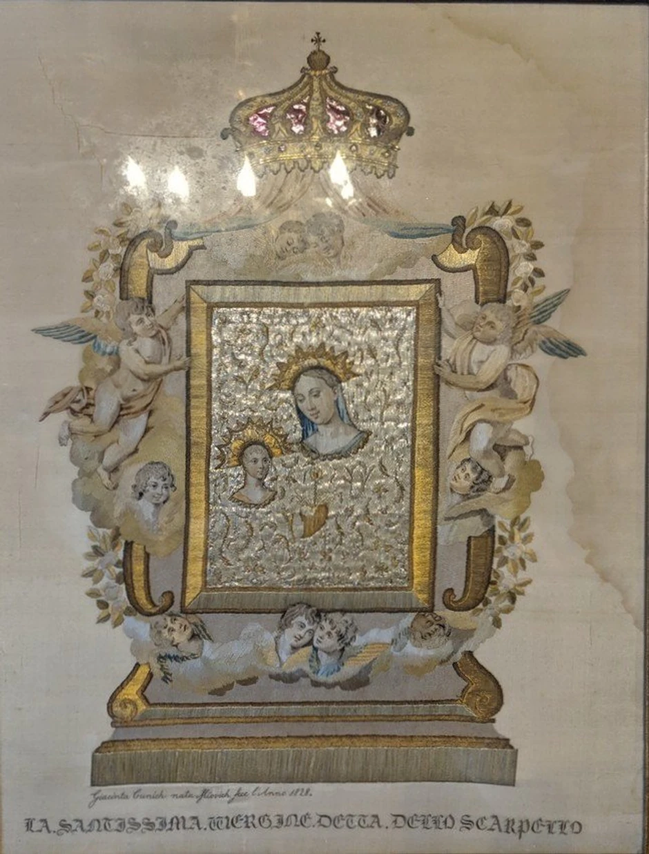 No, za Gospu od Škrpjela vezuje i jedna tužna legenda – ona o zlosrećnoj sudbini Jacinte Kunić, Peraštanke koja je čak četvrt veka uzalud čekala svog izabranika da se vrati s mora. Slično Penelopi, ona je sve to vreme iščekivanja svog Odiseja vezla goblen s likovima Isusa, Bogorodice i anđela, koji se i danas čuva kao posebna dragocenost.