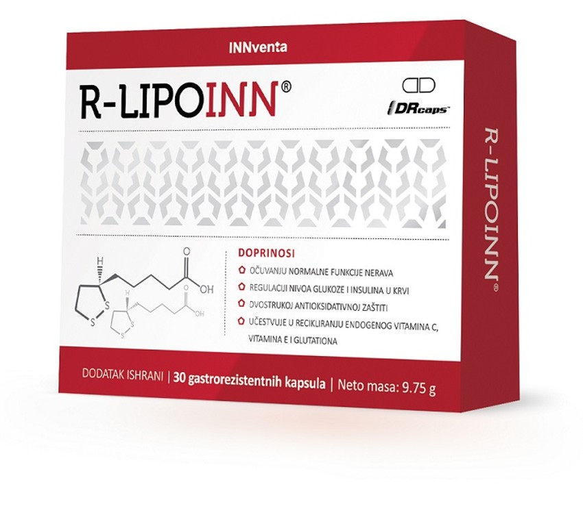 Proizvod R-lipoinn® je jedini proizvod na našem tržištu koji sadrži samo aktivni oblik alfa-lipoinske kiseline. Na taj način se obezbeđuje brz terapijski efekat i maksimalna iskoristljivost aktivnog oblika. Ovaj proizvod se u pojedinim kliničkim istraživanjima pokazao efikasan kod anosmije, a vrlo često se preporučuje i osobama koje osećaju trnjenje i peckanje u prstima, dijabetičarima u prevenciji nastanka komplikacija bolesti u vidu neuropatija, kod hroničnih neuropatskih bolova, ali i radi poboljšanja opšteg stanja organizma.