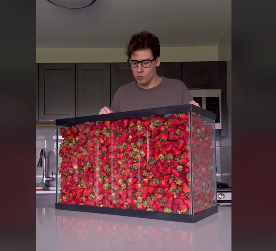 Skrolujući društvenim mrežama često možemo naleteti na bizarne video snimke i čudne izazove koji nas mogu zaprepastiti i ostaviti bez reči - što se upravo na svetskom nivou desilo sa video snimkom jednog muškarca koji je pokazao svima za koliko sati je pojeo bezbroj jagoda upakovanih u ogroman akvarijum.