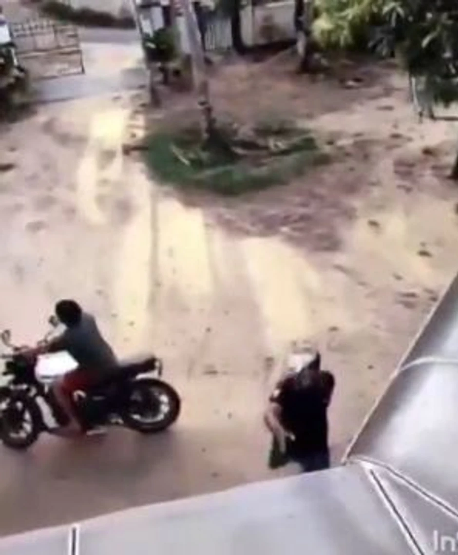 Baba od momka koji je čekao svoje piće, spazila je njegove drugare na motoru i pojurila ih metlom. Oni su u deluću sekunde okrenuli motor ka kapiji, i bacili se u beg, kako ih žena sa metlom ne bi stigla.