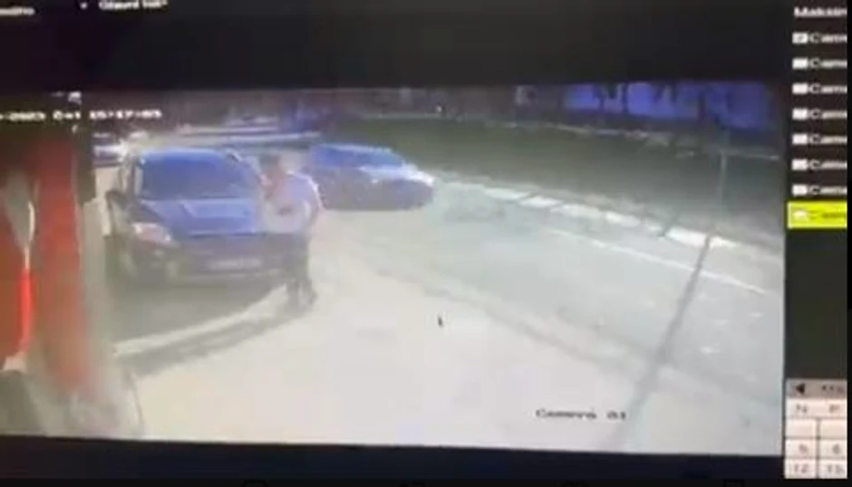 Snimak video nadzora prikazuje kako mušakrac izlazi iz automobila na parkingu ispred jedne prodavnice, da bi svega par sekundi kasnije pored njega projurio autobus velikom brzinom. Čovek je u šoku gledao kako autobus udara u njegov automobil.