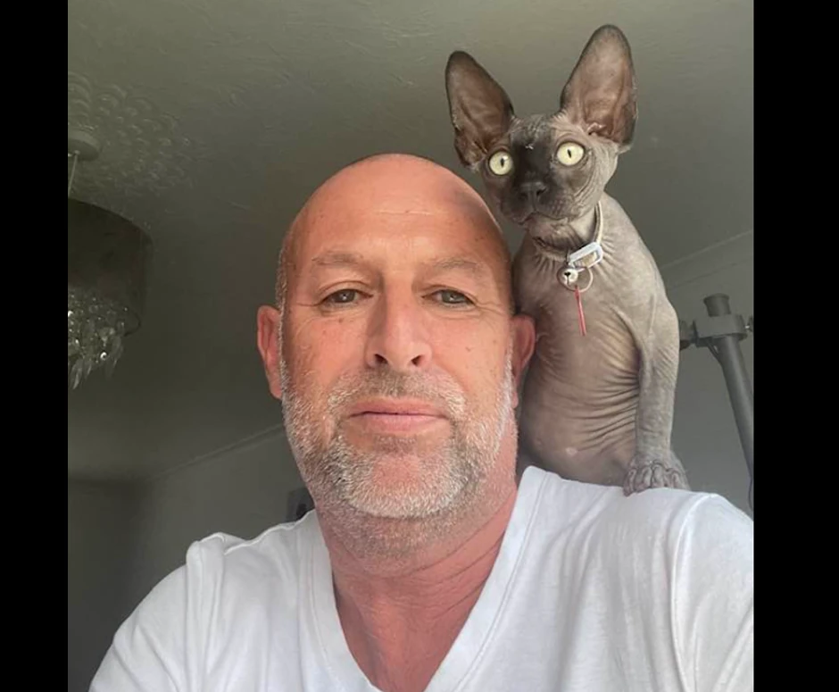 Ova nesvakidašnja "apokaliptična" nezgoda dogodila se kada je Kris Rouli (59), muzičar iz Lestera bio sam kod kuće sa svojim egipatskim sfinks mačetom, Erikom Morkombom.