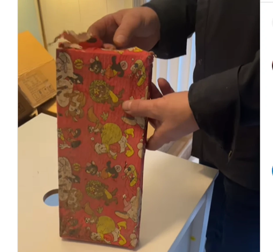 Ovo neobično otkriće zabeležio je i postavio na društvenim mrežama 27. decembra, neposredno pred Božić, što je dodatno naglasilo magičnost trenutka. Tim, koji je vlasnik građevinske firme, bio je u procesu renoviranja kada je naišao na paket, upakovan u starinski papir sa likovima iz Diznijevih crtanih filmova.