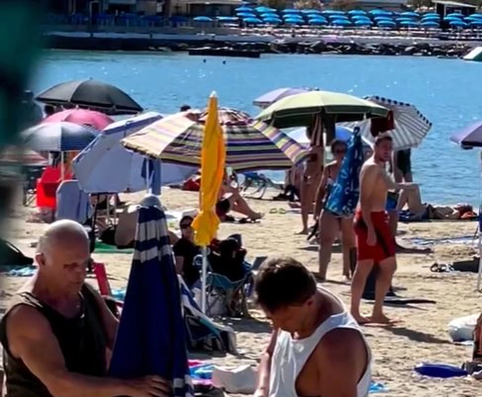 Naime, dok je stariji držao suncobran, mlađi muškarac je nonšalantno bušio rupu u pesku, na zaprepašćenje svih onih koji su bili u njegovoj blizini.