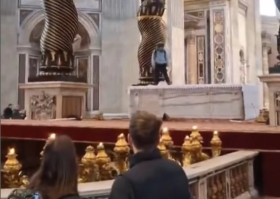 U Bazilici Svetog Petra u Vatikanu, muškarac je jutros, u petak 7. februara, napravio incident na Oltaru ispovesti ispod Berninijevog baldahina. Tom prilikom oštetio je šest svećnjaka vrednih oko 30 hiljada evra. Muškarac je priveden od strane vatikanske žandarmerije i prijavljen nadležnim organima. Prema dostupnim informacijama, svećnjaci nisu pretrpeli ozbiljna oštećenja i vraćeni su na svoje mesto nakon incidenta.