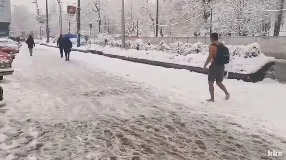 Potpuno bos, bez majice i u šortsu ovaj muškarac je izazvao čuđenje građana Sarajeva, koji su se zaustavljali da ga fotografišu i snimaju dok obilazi grad. Nije poznato da li je u pitanju neki performans ili je oskudno obučeni muškarac jednostavno odlučio da se rashladi odnosno trenira svoje telo i duh šetnjom po hladnoći.