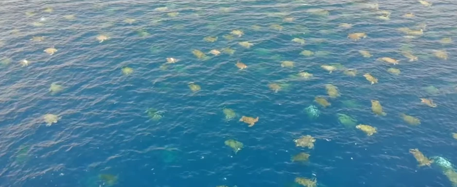 Snimak koji je uspeo da ulovi dron, a koji je preneo Gardijan otkriva čari morskog života i njenih stanovnika, zelenih morskih kornjača koje se u koloniji kreću zajedno prema mestu gde će polegnuti jajašca, prenosi Klix.ba.
