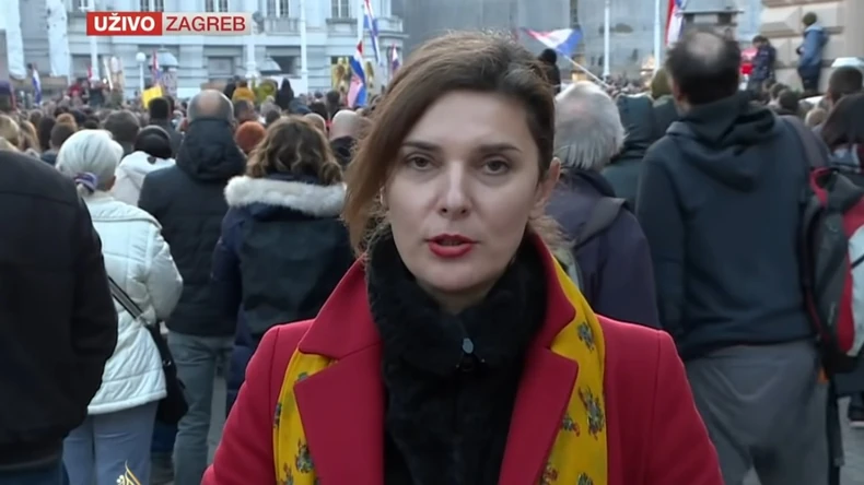 Protest u Zagrebu protiv uvođenja kovid propusnica i novih mera u subotu obeležio je bizaran snimak koji je nastao u trenutku kada je novinarka izveštavala o demonstracijama.