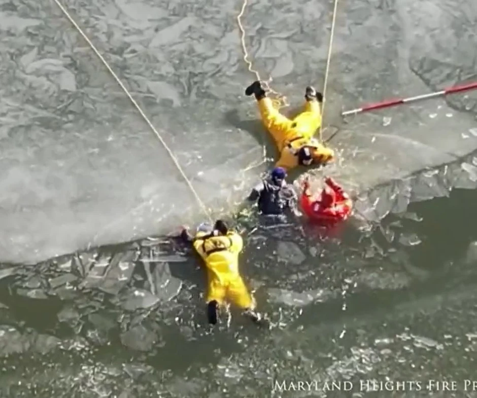 Na pravom mestu u pravo vreme našli su se vatrogasci iz Sent Luisa. Dok su održavali vežbe spasavanja ljudi iz vode, dvoje tinejdžera propalo je kroz led jezera Kriv Kojer.