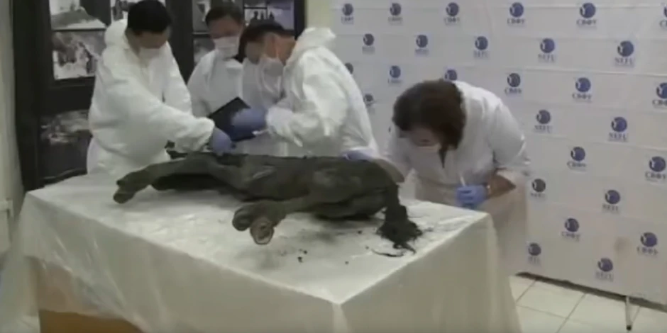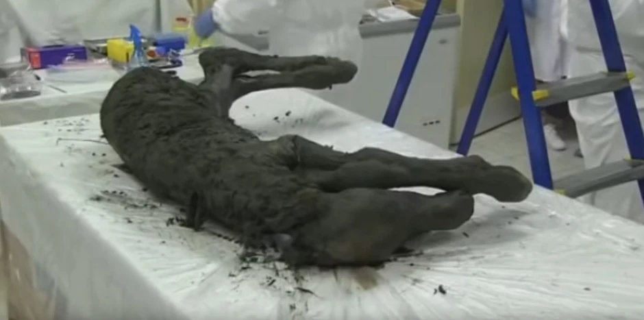 Slike iz laboratorije u Jakutsku – najhladnijem gradu na svetu – prikazuju potragu za "živim ćelijama" na lešu boje đumbira, zaleđenom u permafrostu 30. 000 do 40. 000 godina.