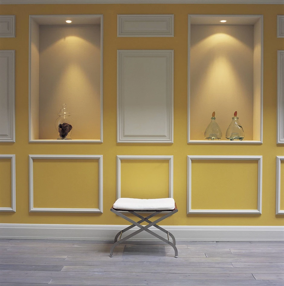Horizontalne bordure na spoju zida i plafona mogu imati prostor u koji se smešta rasveta. Efekat indirektne rasvete dodatno ističe profilisane bordure i izdiže plafon. Zidovi se mogu dodatno ukrasiti gipsanim okvirima u donjoj ili gornjoj zoni. Okviri u gornjoj zoni zida zgodno su mesto za postavljanje slika i ogledala. Okviri nude mogućnost bojenja zida unutar njih u drugu boju ili lepljenja dekorativne tapete. Na ovaj način zid se ističe i dobija na posebnosti. Posebna gipsana dekoracija je u vidu rozeta. One se najčešće postavljaju na sredini plafona gde se nalazi direktna rasveta. Profilacija rozeta može biti najrazličitija, od floralne do geometrijske. Najbolji efekat kod primene gipsane dekoracije je u igri boje.