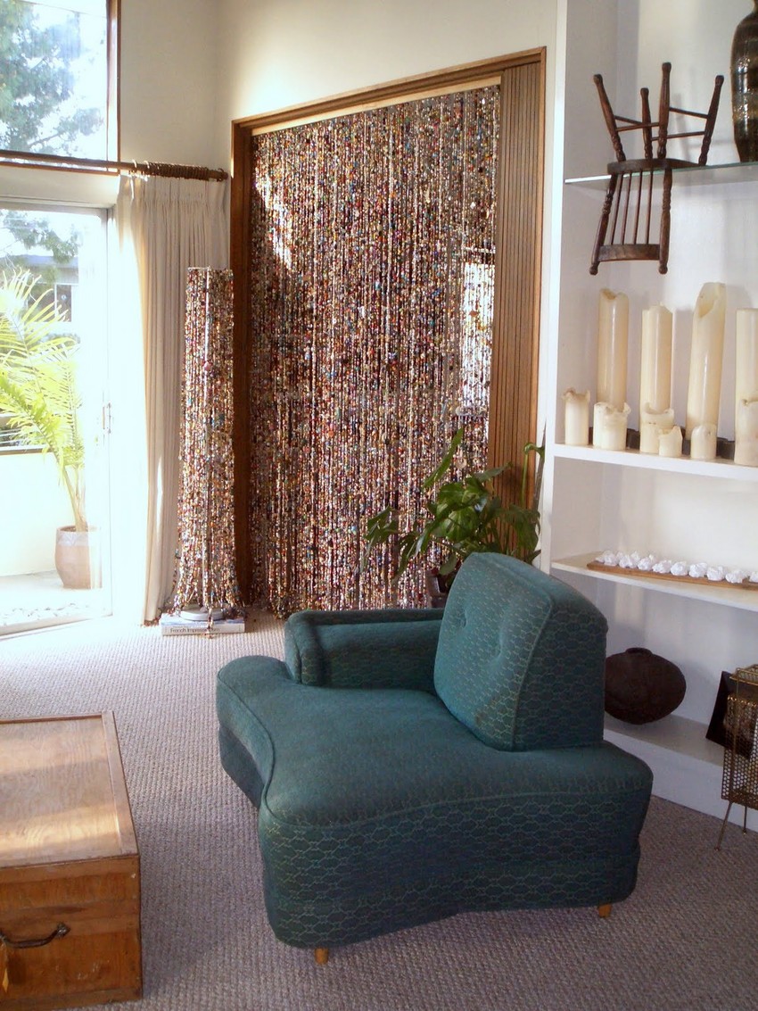 Dekoracija od perli se može naći i na zidu. Možete dodatno dekorisati prazan zid kačenjem zavese od perli, školjki, suvog cveća, kamenčića...