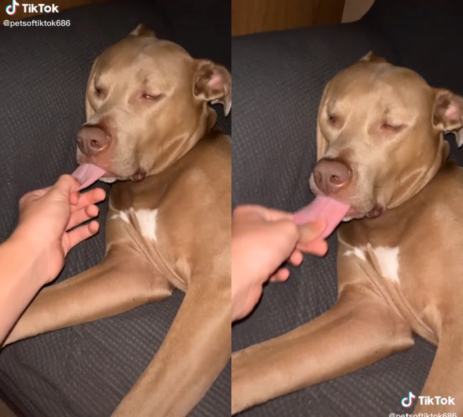 Naime, vlasnik je nakon što je video da njegov pas spava, odlučio da se našali sa njim, pa mu je palo na pamet da ga povuče za jezik. Prvobitno ga je blago povukao, međutim kad je video da njego ljubimac uopšte ne reaguije na šalu i da je u dubokom snu, onda je odlučio da ga povuče do kraja.