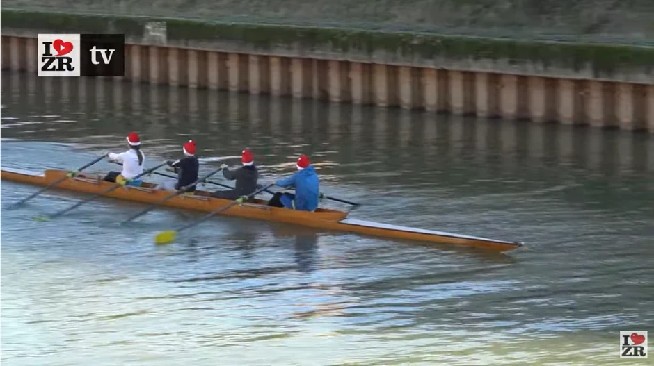 Veslači Veslačkog kluba "Begej 1883" odlučili su da odrade prvi trening na vodi, a kako je vreme praznika, umesto zimskih kapa, na glavama su imali deo Deda Mrazove "uniforme", piše "IloveZrenjanin".