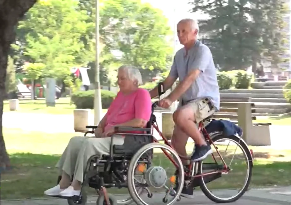 Naime, Dobojlije ih svakodnevno sreću u vožnji na biciklu, prilagođenom invalidskim kolicima... Čudan spoj bicikla i invalidskih kolica Rankova je ideja. Da olakša bolesnoj supruzi, ali i sebi, napravio je prevozno sredstvo.
