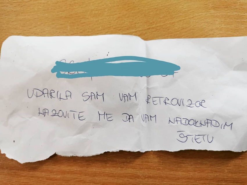 - Ja sam bila na bolovanju u tom trenutku, ali je i dete imalo neke probleme, pa smo išli na pregled i u celoj toj ludnici, desilo se. To je bilo na parkingu, ja da uparkiram auto i udarim drugi auto od ukočenosti i nervoze. Baš mi je bilo neprijatno, poludela sam kad sam videla pta sam uradila. Ali isto tako bih volela, kad bi mene neko sutra udario, da mi ostavi poruku - kaže za "Blic" ovaj savesni vozač.