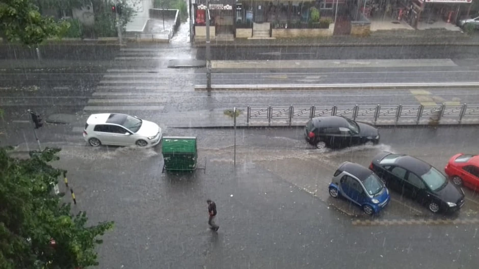 Pljusak praćen jakim vetrom je oko 15 časova protutnjao prestonicom, spustio temperaturu za tri-četiri stepena, a u pojedinim delovima grada napravio prave male bazenčiće.
