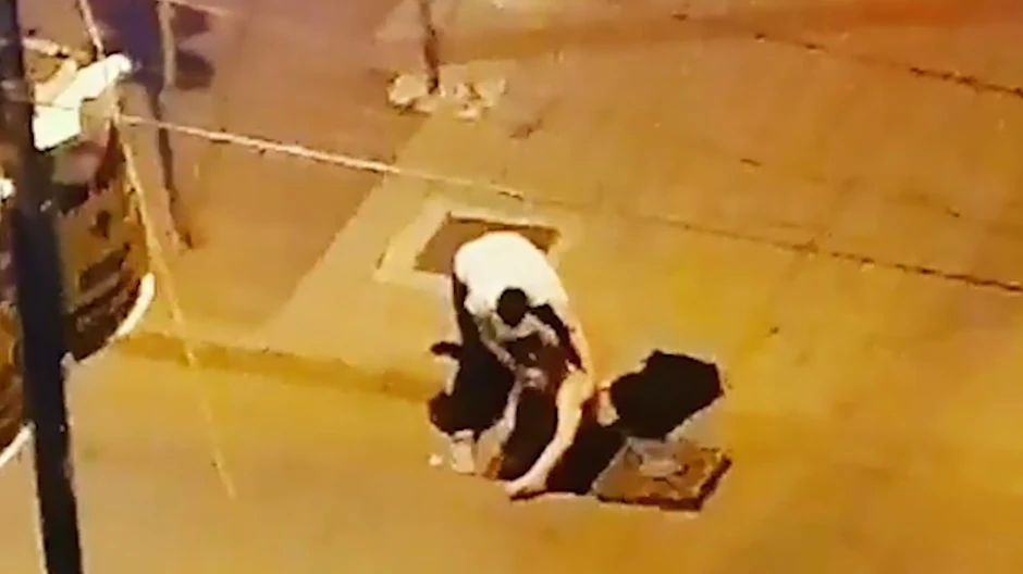 Na snimku se vidi devojka kako izlazi iz šahta nasred ulice polugola, bez majice, samo u brishalteru, poprilično zbunjena... Dočekuje je mladić koji uz mnogo muke uspeva da je izvuče iz šahta i pomaže joj da se očisti. Dok se ona oblači i sređuje, on vraća poklopac iz šahta, kao da je to sasvim normalna stvar... Za to vreme pored njih prolazi nekoliko automobila, čak i jedan biciklista, koji gleda u čudu, ali ne prilazi da vidi šta se dešava... Na kraju oboje prelaze ulicu i udaljavaju se od "mesta zločina".