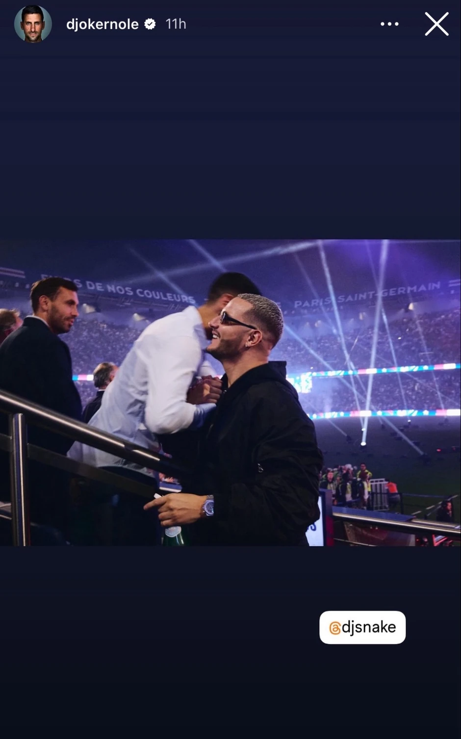 Višestruko nagrađivani producent i hedlajner EXIT festivala DJ Snake našao se rame uz rame sa najboljim teniserom sveta, deleći trenutak euforije nakon što je PSG po prvi put postao šampion Evrope. Bliski susret dve globalne ikone sporta i dance muzike zabeležen je na proslavi titule u Parizu, a ovaj momenat Novak je podelio na svom Instagram profilu.