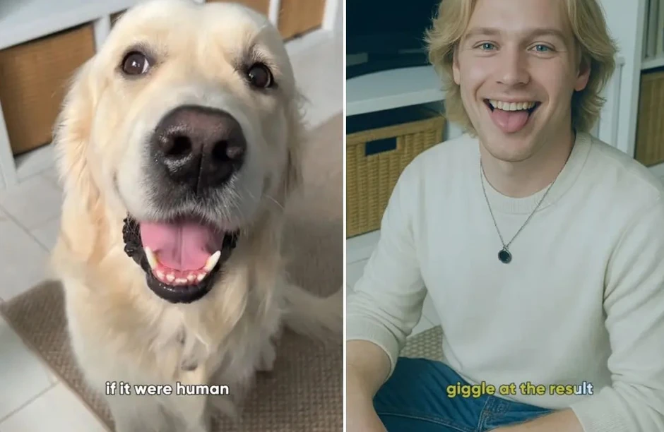 U viralnom TikTok videu koji ima čak 1,9 miliona pregleda, korisnik piše: „Zamolio sam ChatGPT da pretvori mog psa u čoveka.” Snimak prikazuje irskog setera kako leži na krevetu, a zatim prelazi u lik žene sa crvenom kosom, zelenim džemperom i ogrlicom sa motivom pseće kosti – kao neka čudna verzija „Lepotice i zveri“.