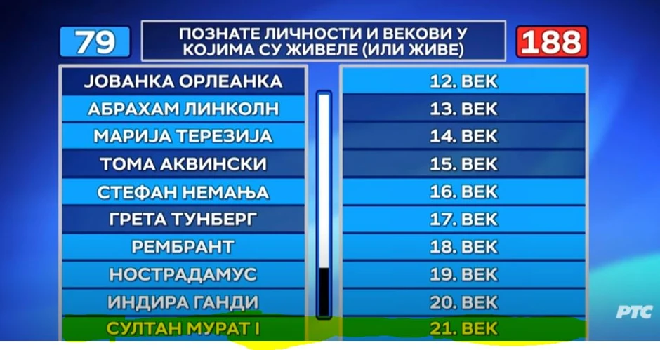 Da li zbog hit pesme "Žena od sultana" ili jednostavno zbog treme, jedan učesnik Slagalice, postao je pravi hit na društvenim mrežama, nakon što je u igri "Spojnice" dao čudan i netačan odgovor na jedno istorijsko pitanje.