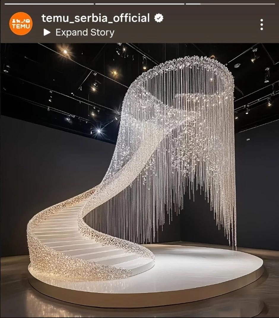 Fotografija iz oglasa prikazivala je, na prvi pogled, impozantne spiralne staklene stepenice ukrašene kristalima, koje više liče na luksuznu scenografiju nego na praznični ukras. Upravo taj vizuelni efekat zbunio je korisnike širom sveta.