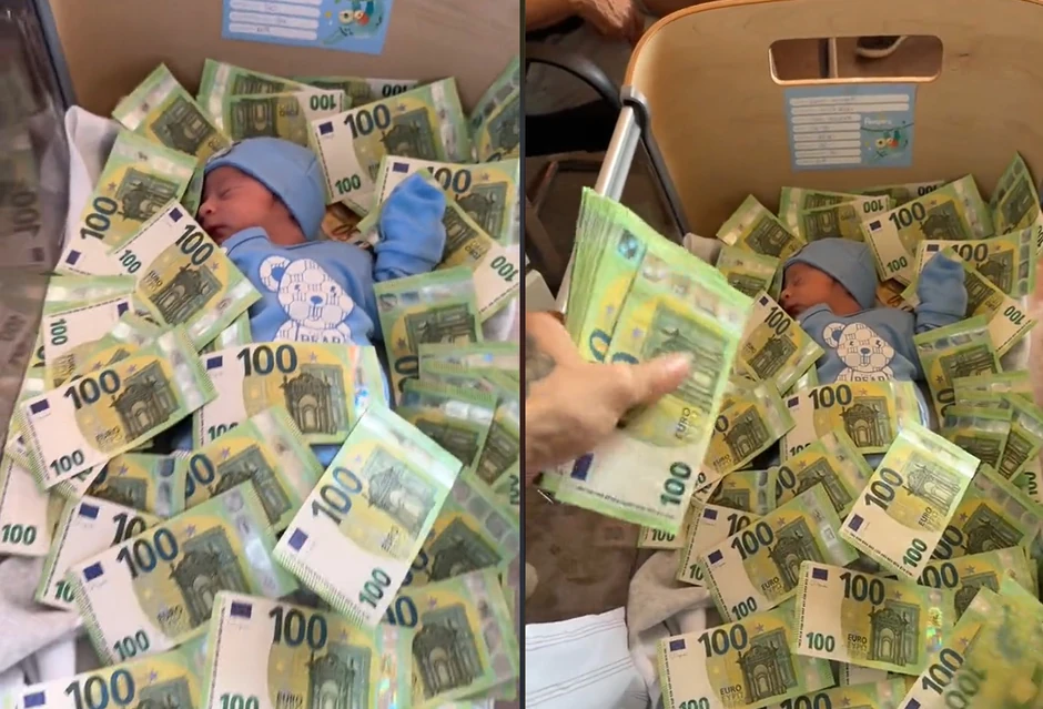 Naime, jedna korisnica je podelila na svom "Tik Tok" nalogu darivanje jednog dečaka, koji je toliko zasut novcem, da su novčanice od 100 evra pokrile celu kolevku.