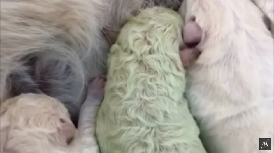 Farmer sa Sardinije Kristijan Maloči ostao je u čudu kada je primetio da se jedno od petoro mladunčadi pasa iz istog legla razlikuje od drugih, i to po boji krzna koje je bilo zeleno, nalik na boju pistaća.