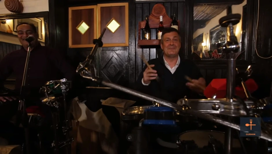 Na kraju večeri, Dejan je seo sa kafanskim bendom i okušao se za bubnjevima.