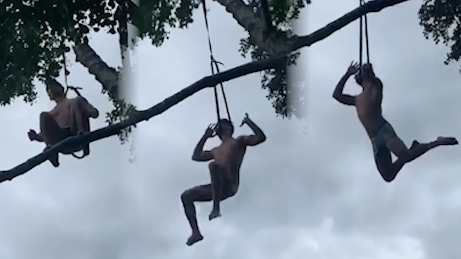 Na snimku koji je postao viralan, vidi se momak koji visi sa grane u pripremi da skoči. Kada se odbacio, kanap mu se nesrećnim spletom okolnosti našao oko vrata. Nije poznato da li je planirao da visi nad vodom pre skoka okrenut naopačke ili je plan bio nešto drugo.