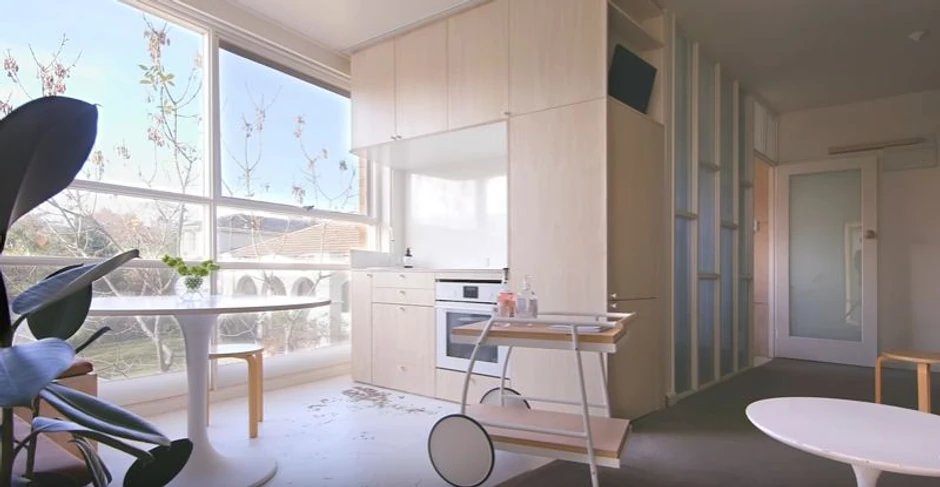 Stan u Melburnu nalazi se u zgradi sagrađenoj 1960. godine, u kojoj je još 15 stanova. Kad su arhitekte u njega ušle, imao je jednu spavaću sobu, a oni su u njemu uspeli da naprave još jednu sobu. Odvojenu kuhinju pretvorili su u dodatnu sobu, dok su kuhinju prebacili u dnevnu sobu s trepezarijom i dnevnim boravkom. Tako su stvorili trosobni stan u 40 kvadrata.