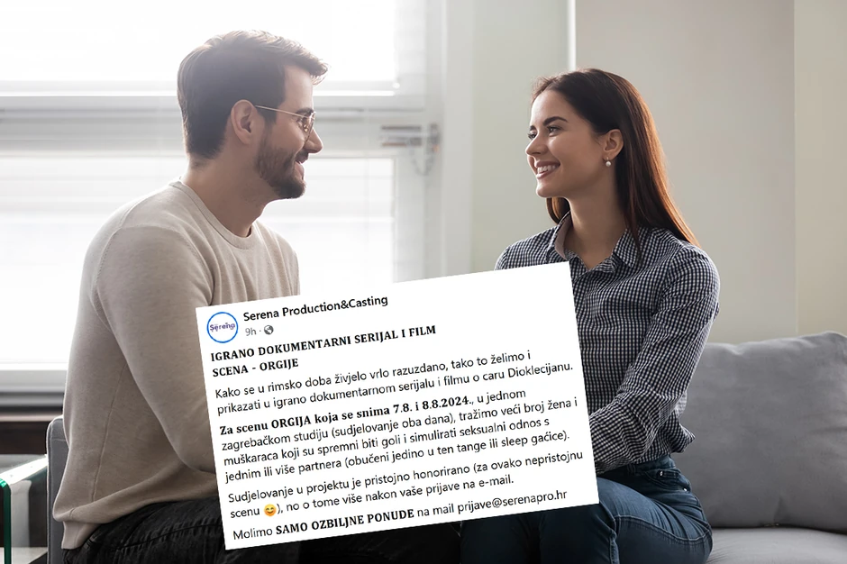 U oglasu traže samo ozbiljne ponude za scenu "Or*ija", koja će se snimati 7. i 8. avgusta u jednom zagrebačkom studiju, uz objašnjenje da se radi o igrano dokumentarnom serijalu i filmu o caru Dioklecijanu.