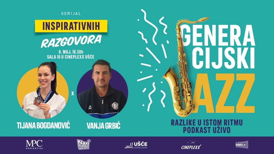 U pitanju je druga epizoda podkasta „Generacijski Jazz – Razlike u istom ritmu“, a u ovom izdanju svoje stavove će ukrstiti fenomenalna mlada tekvondistkinja Tijana Bogdanović, koja je za Srbiju osvojila 19 medalja, i legendarni odbojkaš Vanja Grbić, koji u svom arsenalu ima 14 medalja sa reprezentacijom.