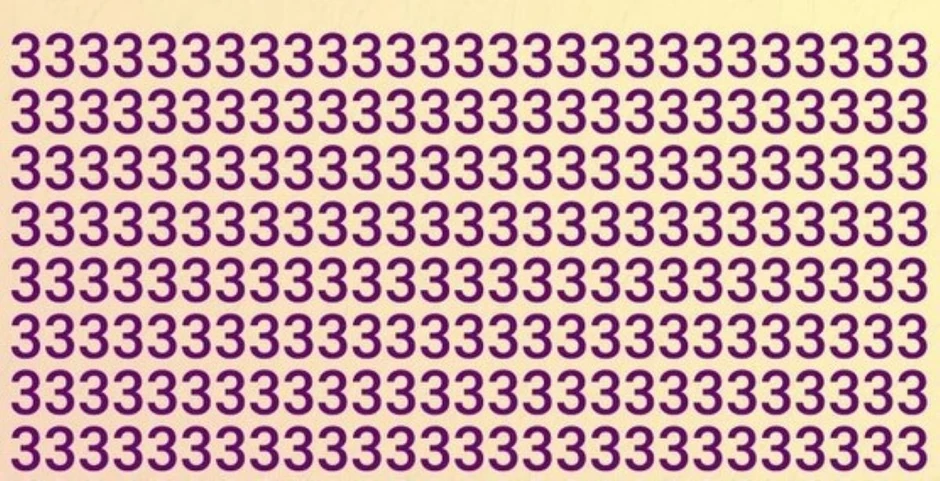 U ovoj vizuelnoj zagonetki, vaš zadatak je da među 16 redova broja "3" pronađete jedan jedini broj "8". Imate svega 10 sekundi. Ova optička iluzija nije samo zabavna već i testira vašu moć zapažanja i kognitivne sposobnosti. Samo oni sa izraženim vizuelnim veštinama i pažnjom mogu je brzo rešiti.