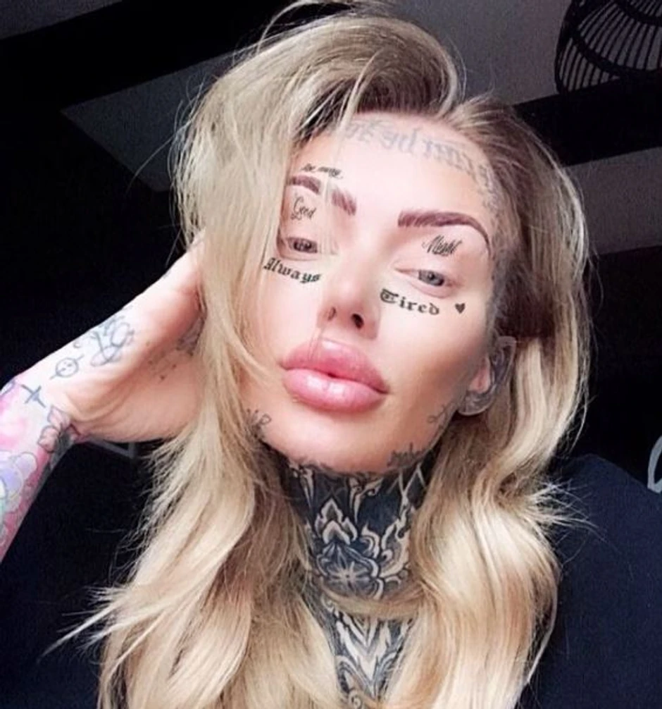 Žena koju su prozvali najtetoviranijom u Velikoj Britaniji počela je da tetovira lice nakon što je ostala bez prostora na telu kojim bi mastilom moglo nešto da se nacrta.