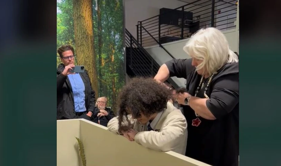 Na snimku se vidi kako žena stavlja sloj komposta preko tela. „Zelena sahrana“ postala je legalna 2019. godine i izvodi se u državama kao što su Njujork, država Vašington, Kolorado, Oregon, Vermont i Kalifornija, ali korisnici TikTok-a su imali različite reakcije u vezi sa metodom sahrane.