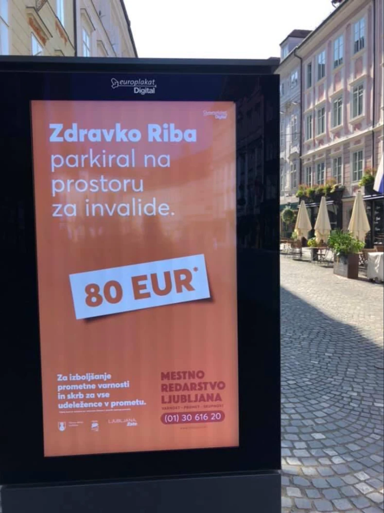 Saobraćajna policija u Ljubljani došla je na ideju da ako vas zatekne u prekršaju, bićete u obavezi da platite kaznu, ali i snosite jednu daleko neprijatniju posledicu. Tako je "Zdravko parkirao na mestu za invalide", platio kaznu od 80 evra i svoje ime pročitao na "bilbordu za bahate vozače".